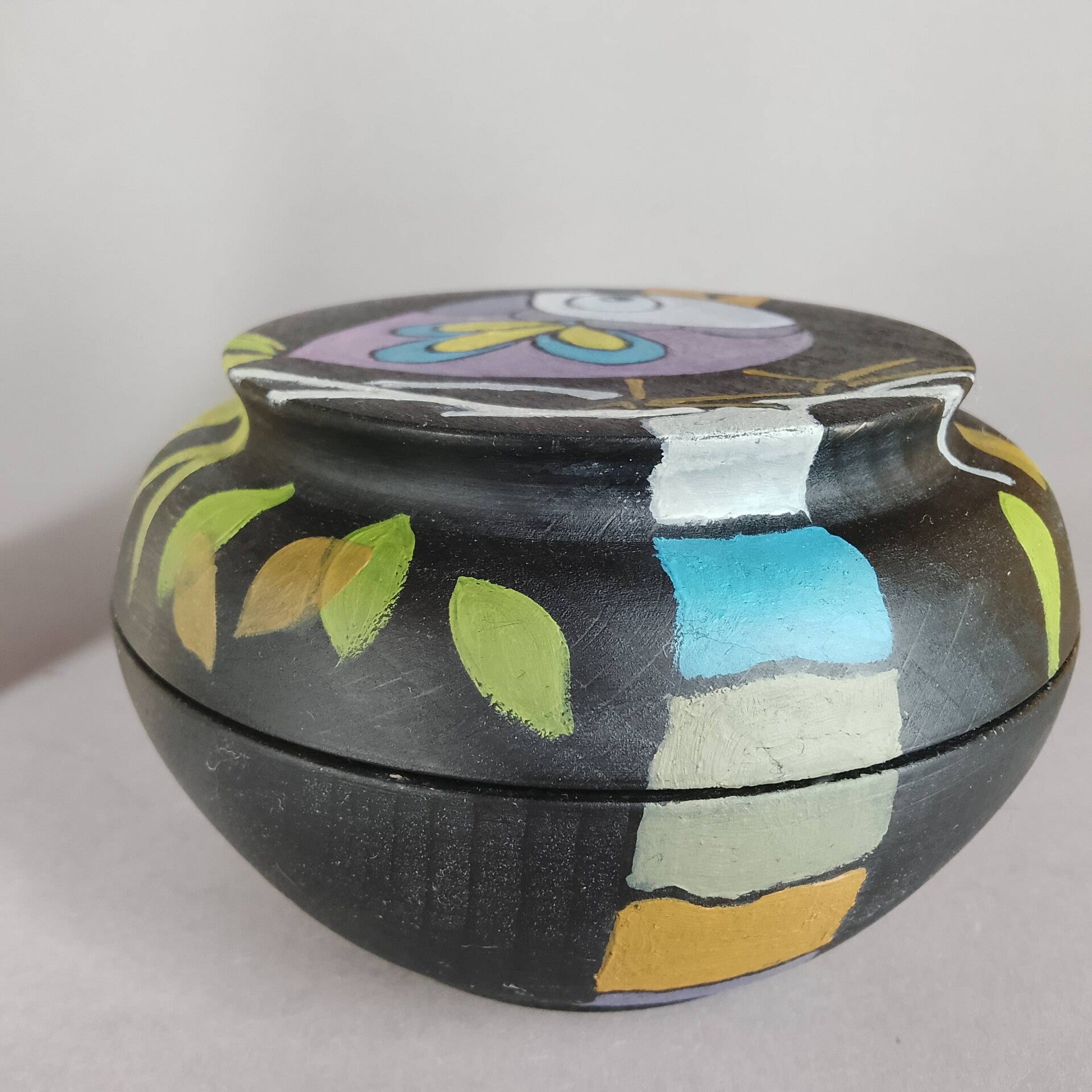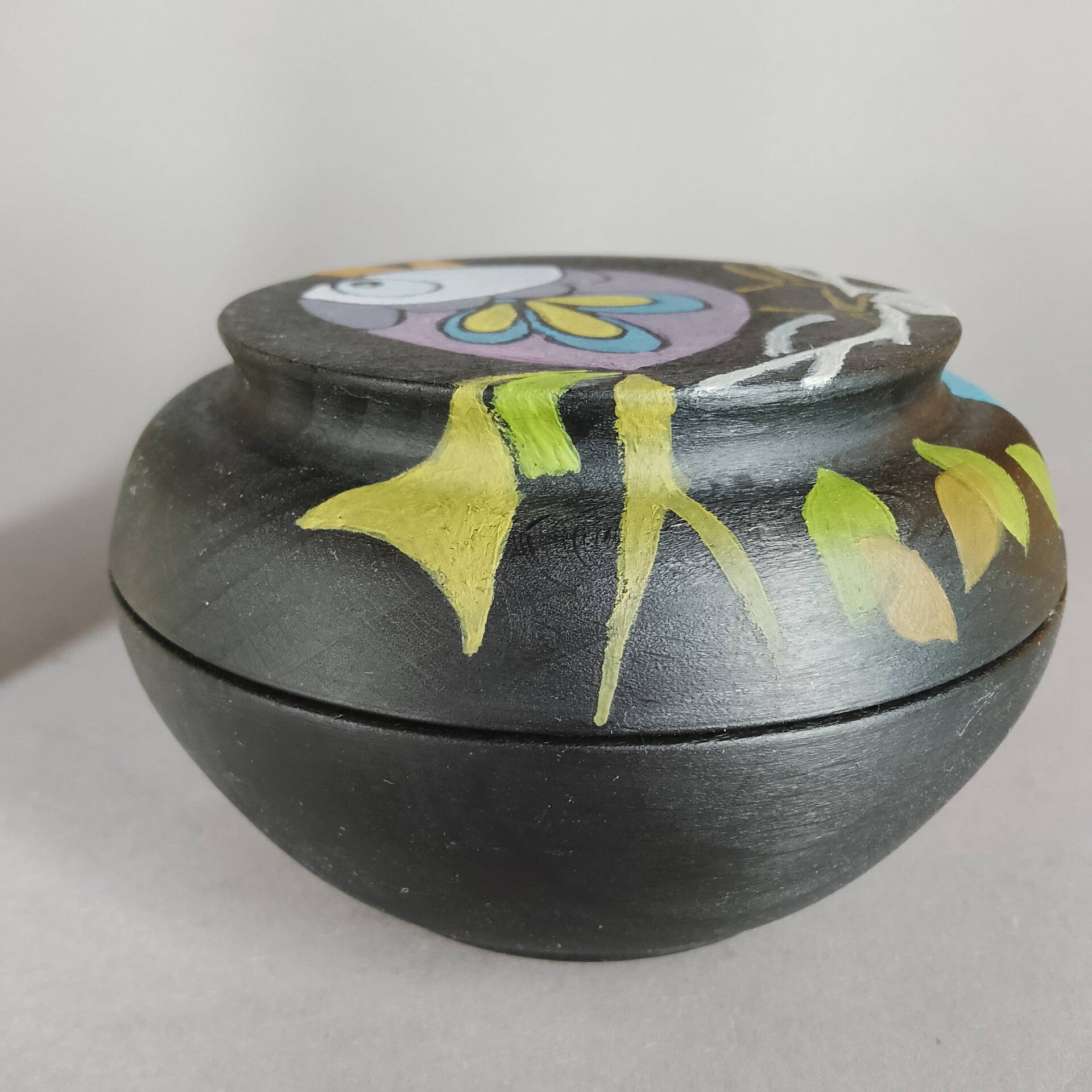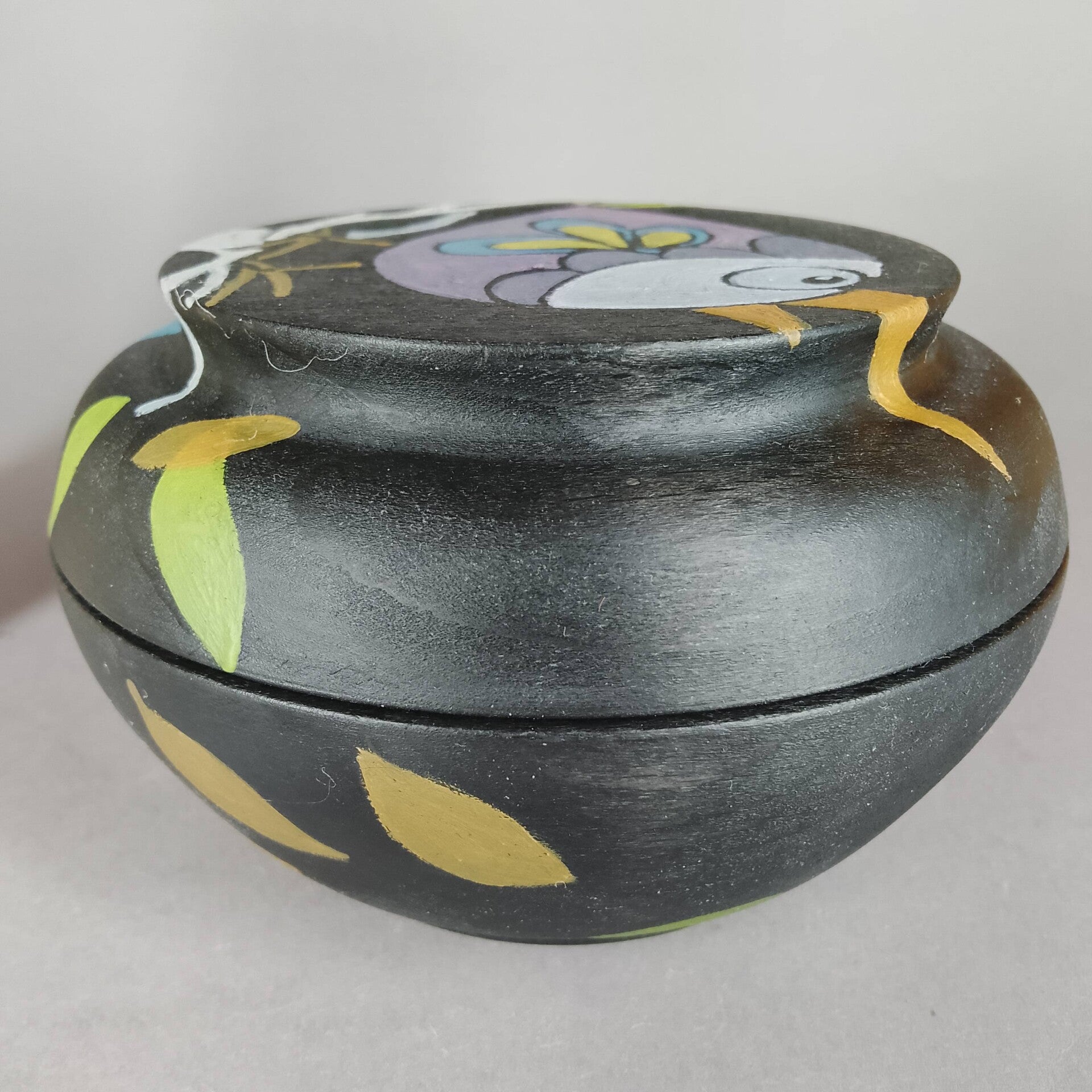 painted beechwood box, with unique artwork